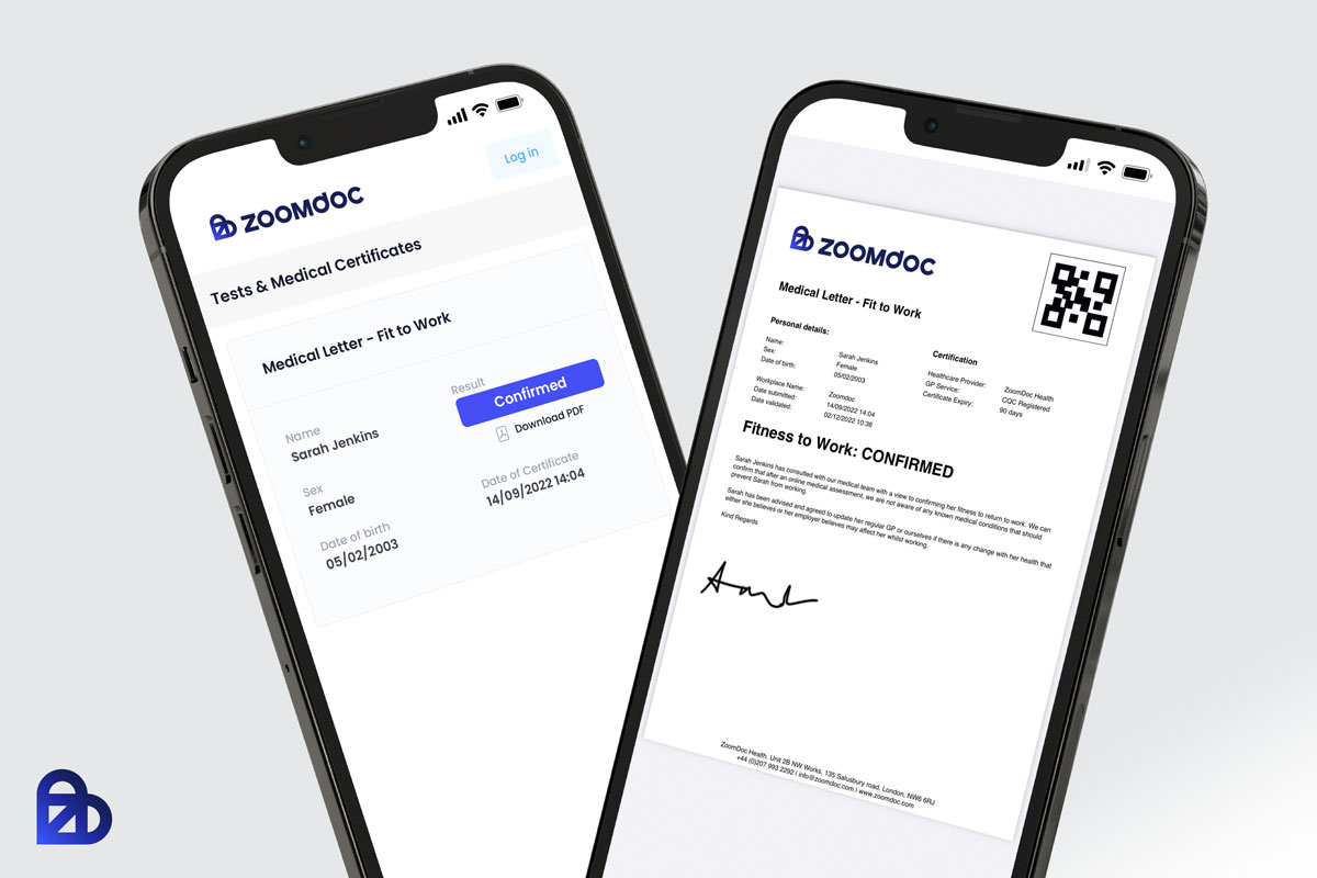 All of our Doctors letters are digital PDF documents on company headed paper with the Doctors full name and GMC registration number. They are QR coded to enable a validity check by your workplace.